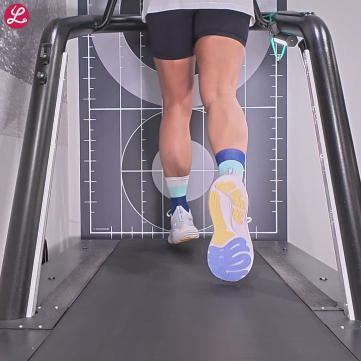 Die Erklärung für den Freiraum ist einfach: Die Belastung beim Laufen ist deutlich höher als beim Gehen. Bei jedem Schritt wird dein Fußgewölbe mit bis zum Dreifachen deines Körpergewichts belastet – dadurch verlängert sich deine Fußlänge.
